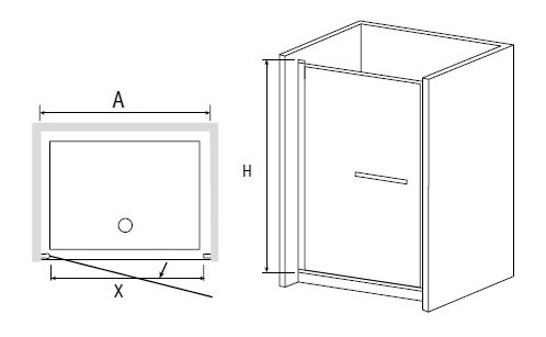 Душевая дверь распашная. Петля с функцией подъема двери. В комплекте нижняя пороговая планка. Трап или поддон приобретается отдельно.