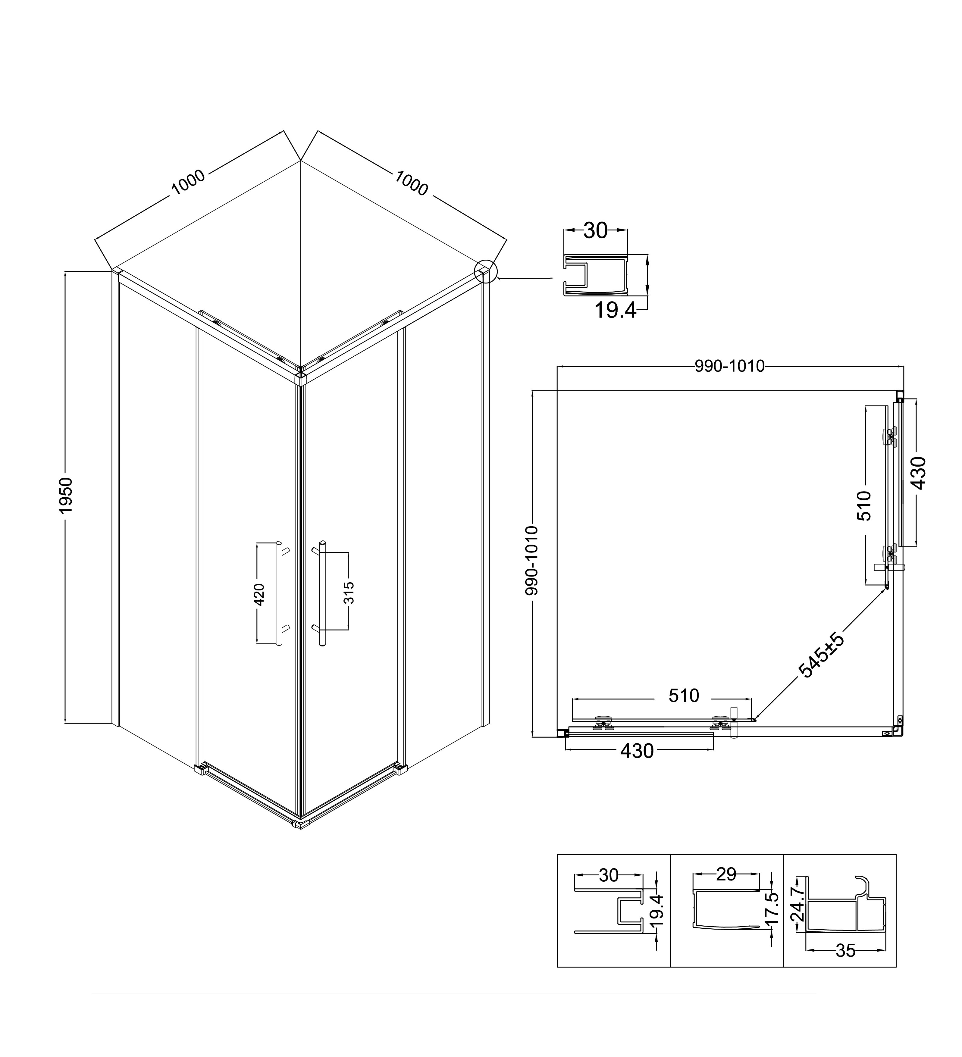 Душевой уголок Niagara Nova 1950x1000x1000 черный матовый NG-6830-34BLACK