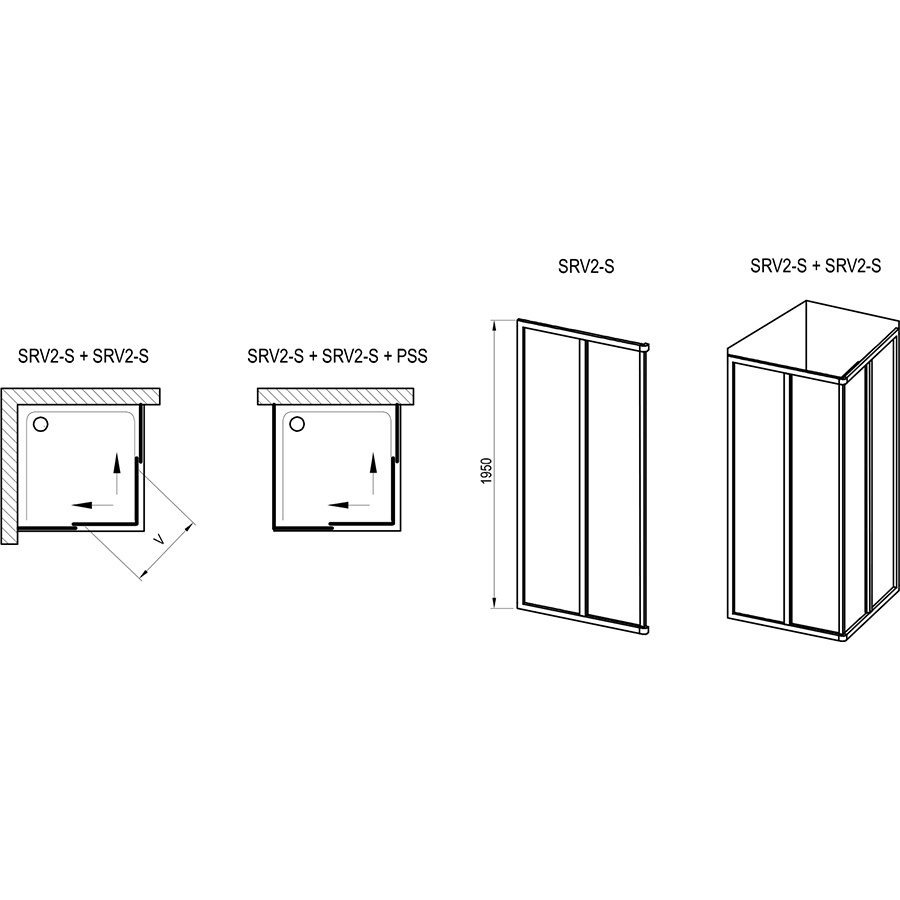 Для комплектации душевого уголка необходимо заказать 2 изделия SRV2-S !