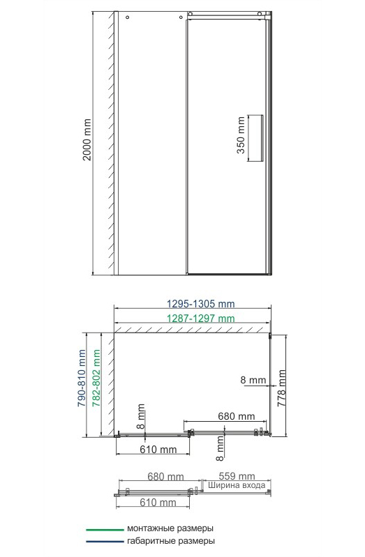 Габаритный размер 1295-1305 х 790 - 810, монтажный размер 1287-1297 x 782-802