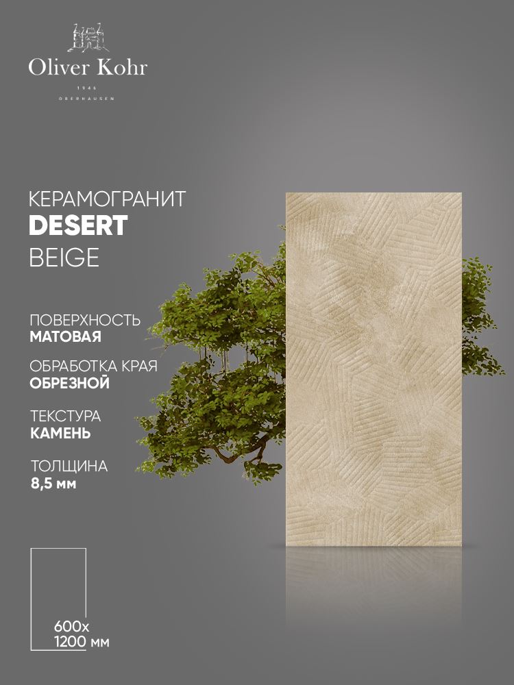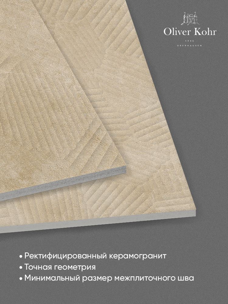 Коллекция Oliver Kohr Desert представляет собой уникальное сочетание эстетики природного камня и современных технологий производства керамогранита. Этот материал идеально подходит для создания интерьеров, где важны прочность, долговечность и стильный внешний вид.