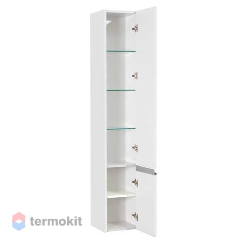 Шкаф-пенал прямоугольной формы с 2 распашными дверками, цвет корпуса - белый, глянец; цвет фасада - белый, глянец. Способ монтажа - подвесной. Ориентация - правая. Фурнитура- хром, глянец. Материал корпуса: влагостойкий ДСП, покрытие корпуса: ламинат. Материал фасада: МДФ, покрытие фасада: ламинат. Состав поставки включает в себя: шкаф, 2 распашные дверки (петли с интегрированной системой плавного закрывания), ручку, 3 внутренние полки из стекла, внутреннюю полку из ЛДСП, комплект доводчиков, комплект полкодержателей, комплект креплений, инструкцию по монтажу. Страна производитель - Россия. Гарантия завода изготовителя - 3 года.