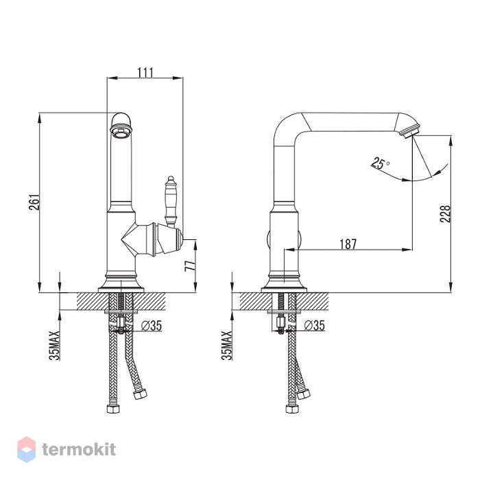 Смеситель для кухни IDDIS® изготовлен из высококачественной первичной латуни, прочной, безопасной и стойкой к коррозии. Инновационные технологии литья и обработки латуни, а также увеличенная толщина стенок смесителя обеспечивают его стойкость к перепадам давления и температур.